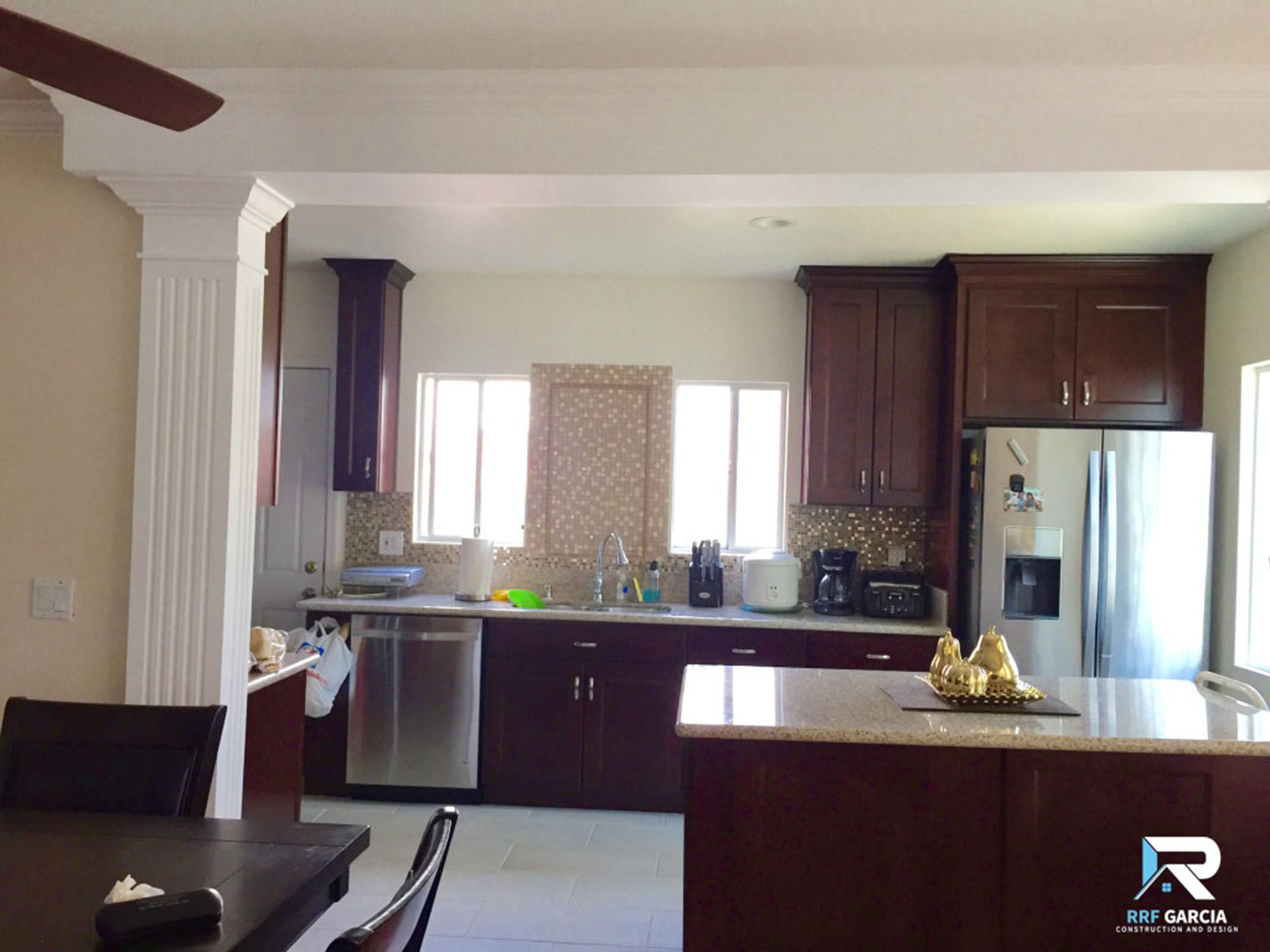 With the help of general contractor Renato “Robie” Garcia, he gave the kitchen a modern upgrade that is functional, spacious and look so much better. He opened the floor plan by tearing down the kitchen walls and added two columns in colonial design to support the beam. Made additional support to the crawl space to make it level