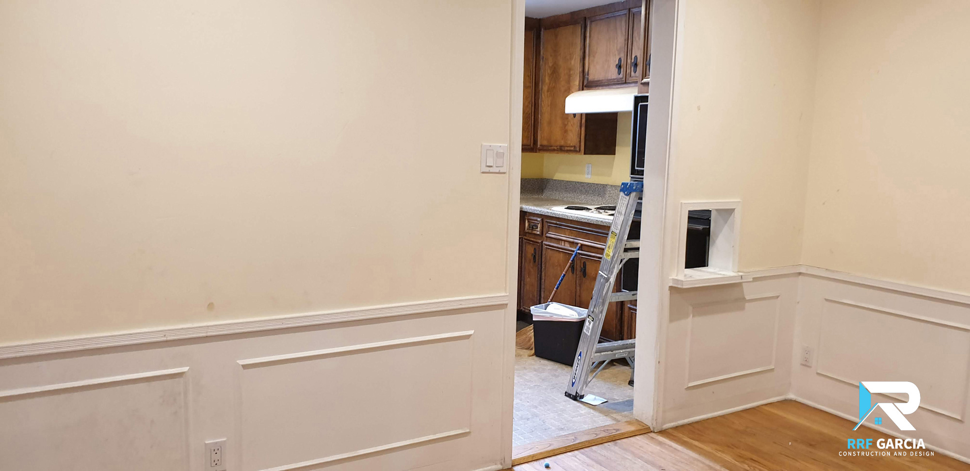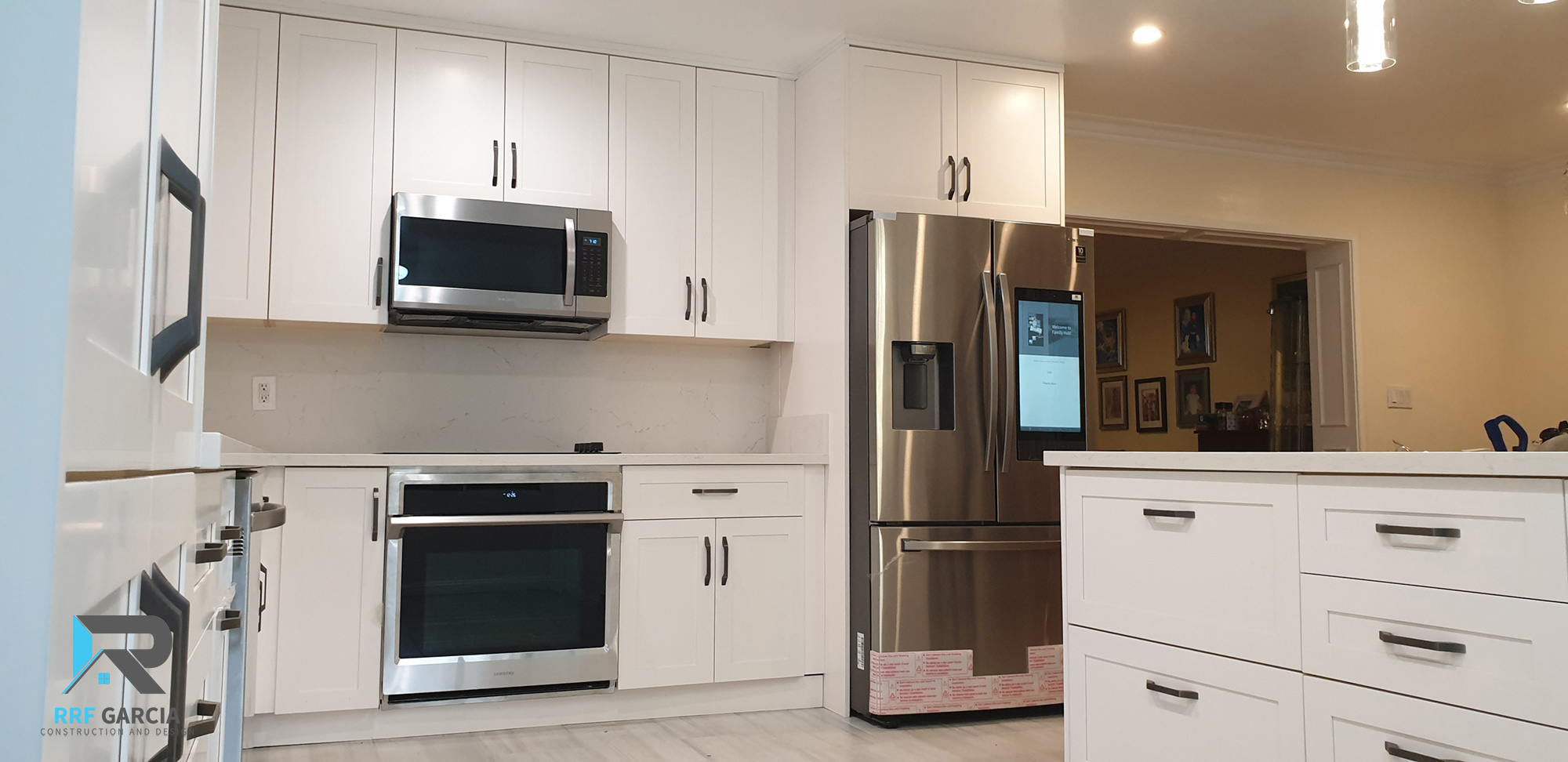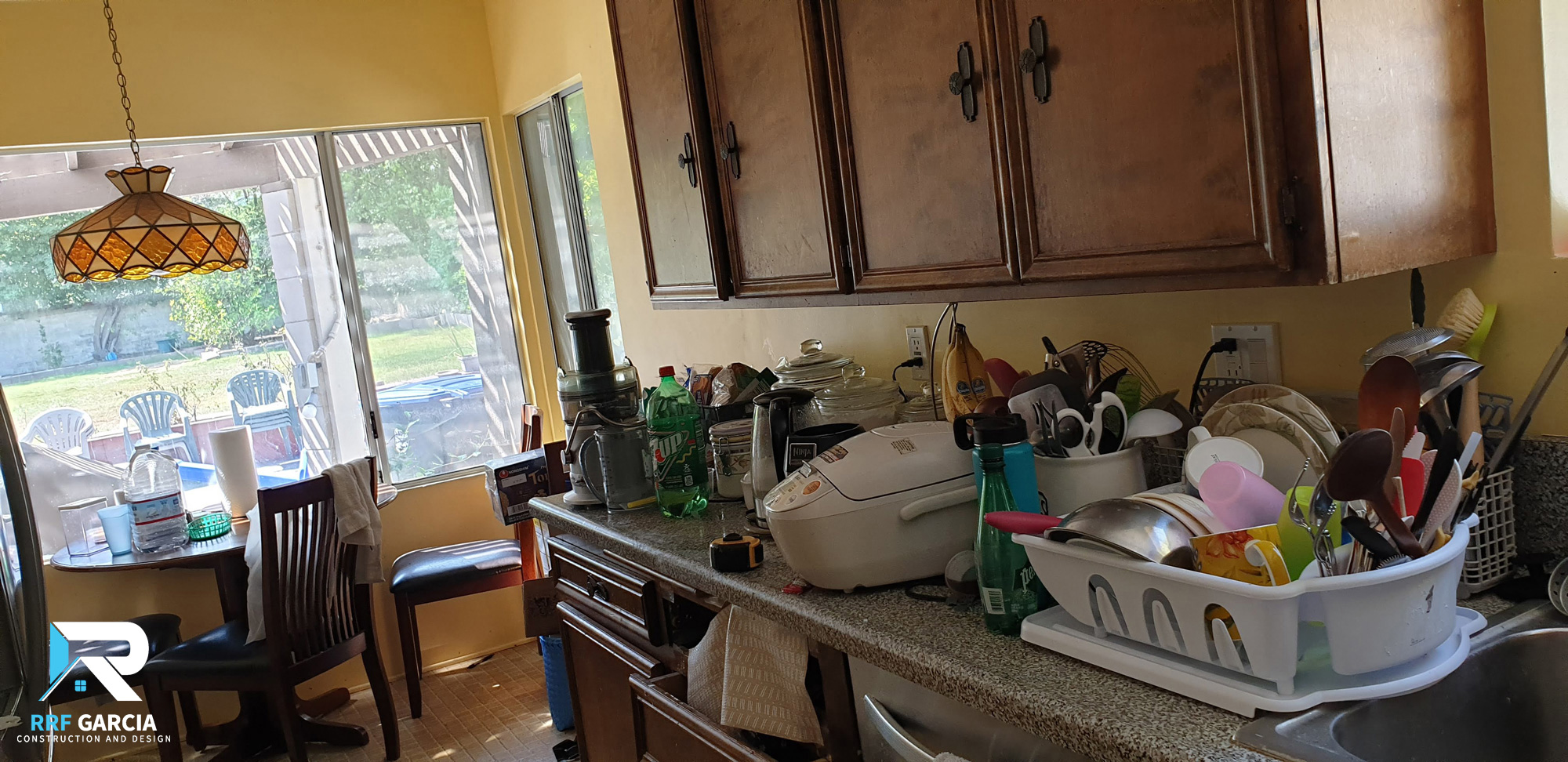 This dated kitchen lacked style and function. RRF Garcia Construction & Design enhanced the look by tearing down the partition wall to make the kitchen look modern, brighter, airy and functional. Roll out and soft close cabinets and drawers were installed on the entire kitchen cabinets and island for extra storage. The kitchen island also introduces extra seating and useable space. Removed top-mount two-hole sink and replaced it with undermount 16-gauge stainless steel kitchen sink. Pendant lights were installed on the island for added lighting. USB ports and additional electric outlets were installed on the island for gadgets. For an upgraded look ceramic tiles were installed on the kitchen floors.